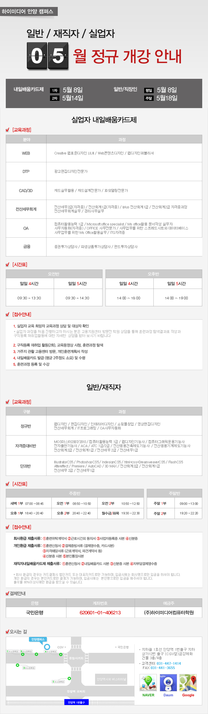 5월 개강일정 안내입니다.