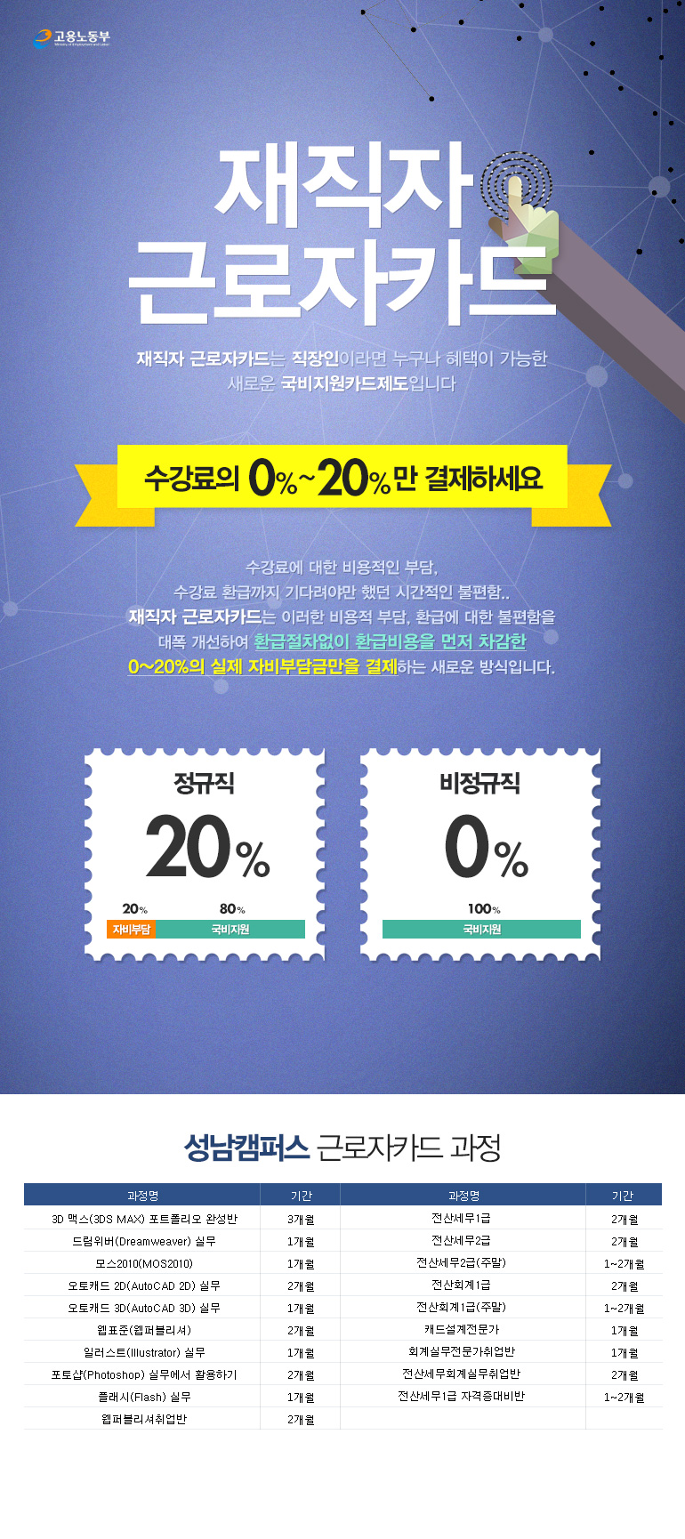 수강료 걱정없는 <재직자 근로자카드> 과정안내